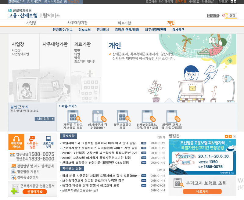 먼저 아래 걸어둔 링크, 근로복지공단 고용산재보험 토탈서비스 홈페이지에 접속한다.