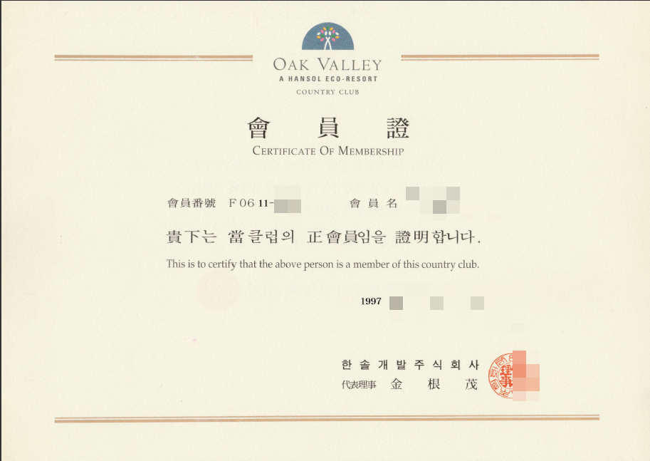 오크밸리 CC 멤버십