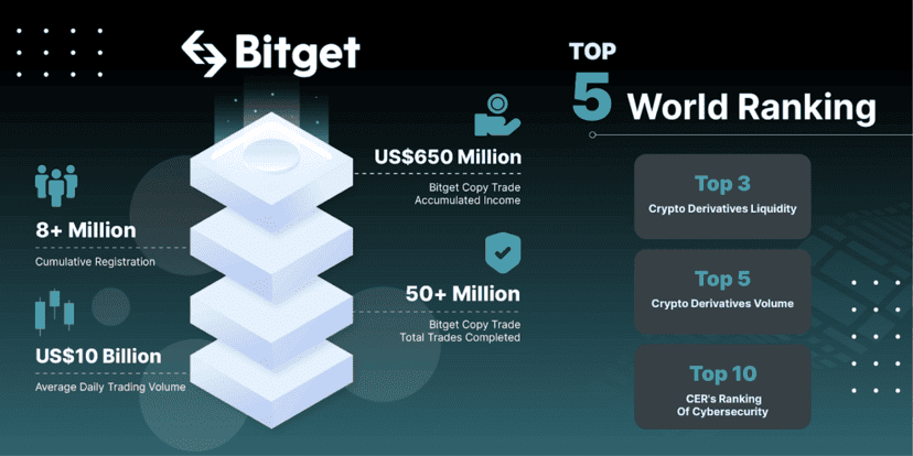 비트겟(Bitget)은 2018년에 설립되었으며 싱가포르에 본사를 두고 있는 글로벌 암호화폐 거래소입니다. 전 세계 100여 개국에 4,500만 명 이상의 사용자를 보유하고 있으며 글로벌 암호화폐 거래소 순위에서 3위를 차지하고 있습니다. .Bitget은 비트코인(BTC), 이더리움(ETH), 리플(XRP)을 포함하여 200개 이상의 암호화폐에 대한 현물 및 선물 거래를 지원합니다.